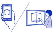 専用のアプリが不要でブラウザから閲覧できるため、PC、タブレット、スマートフォンなどのデバイスからアクセスできます。大型のタッチパネルモニターでキューブを投影しショールームやイベント会場に設置したり、Webサイトで公開し利用者自らの端末で自宅からキューブにアクセスしたり、さまざまな利用シーンが想定できます。