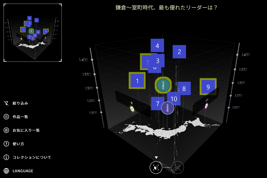 みどころキューブ for Learningは、美術館・博物館で使用されてきた作品鑑賞システムを基にした新しい学習ツールです。 オンライン上で利用可能なノーコードシステムで、さまざまなデータを立方体(キューブ)状の3Dビューアに入れて整理し、全体を俯瞰させることで、見る人の情報理解を促します。 複雑な情報の関係性や、ものごとの多面性を捉えることを助けるため、教育・研究・展示・ワークショップなど、知的活動の現場で幅広く活用できます。