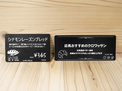 ホテルやビュッフェ、ベーカリーショップなどのプライスカード