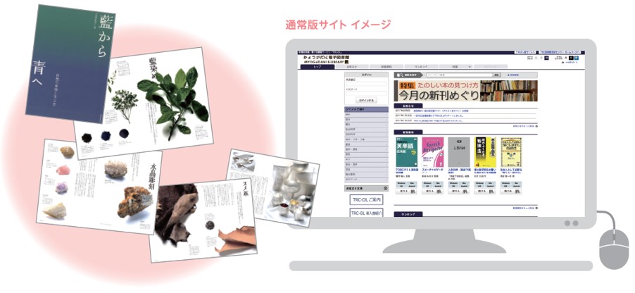 インターネットを介し、「電子書籍」や「法人様が作成された文書・動画(独自資料)」等の検索や閲覧を可能にするサービスです。