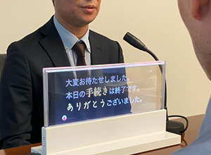 窓口業務等の対話の音声をリアルタイムで文字に変換し、目立たせたい単語をフォントで強調して透明ディスプレイに表示。聴覚障がい者や高齢者など音声を聞き取ることが困難な人や、在住・訪日外国人との円滑なコミュニケーションを支援します。- IT・DX