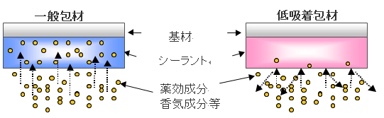 薬効成分や香気成分の吸着を抑制する包装材