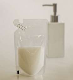 DNPは、ノズルを細くすることで少容量のボトルにも差し込みやすく、詰め替えやすい「DNP詰替えパウチ UNタイプ」を開発いたしました。現在、化粧水や乳液、アルコール除菌液等にご採用いただいております。- パッケージ
