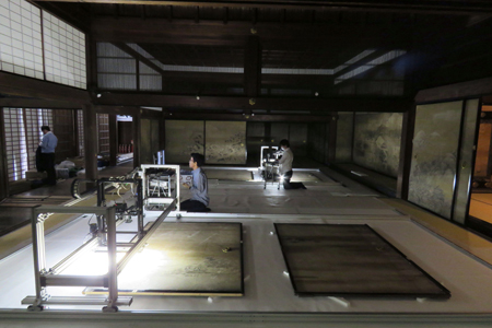 高精細デジタルアーカイブ技術を結集して開発しました。 障壁画・屏風・掛軸などの文化財に対応可能で、 精緻な再現性と耐久性を両立させた文化財複製です。金箔上に直接印刷する特許技術を有し、金地作品も忠実に再現します。