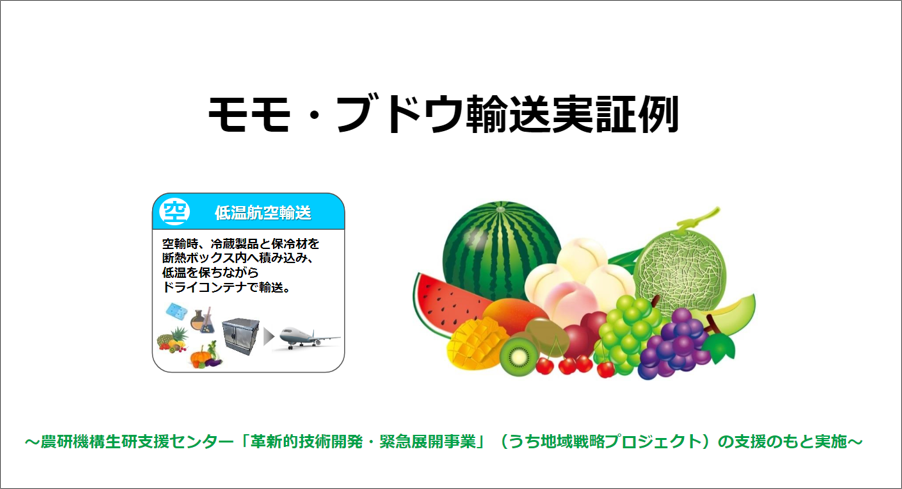 岡山大学青果物輸出コンソーシアム モモ・ブドウ輸送実証例