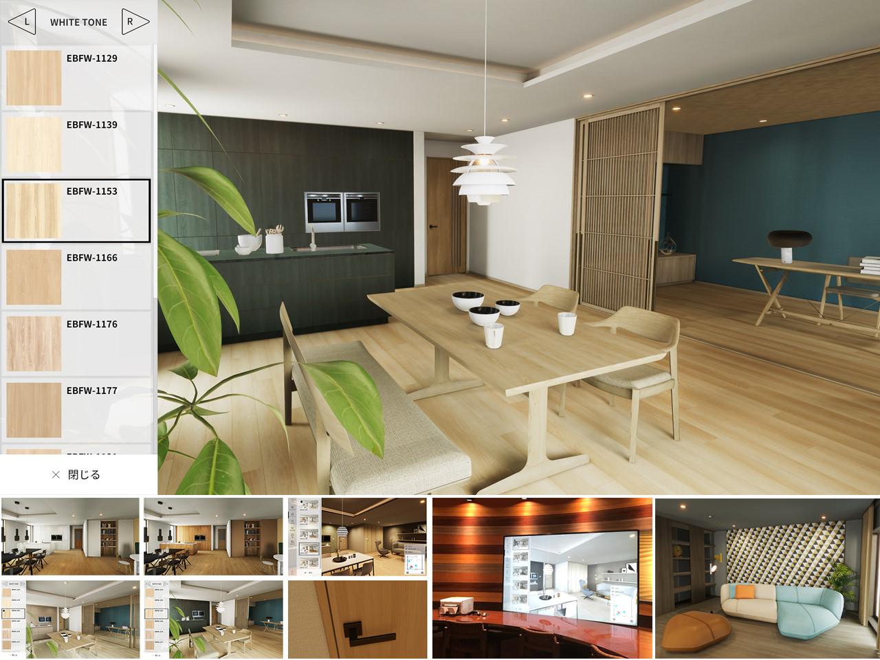 また、PCで動くモデルルームであるため、リモート会議システムを使って遠隔接客を行ったり、機器を持ち運んでイベントや展示会で利用したりなど、コストを抑えながら幅広く活用することができます。- VR