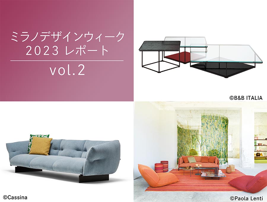 第2回では、B&B Italia、De Padova、Time & Style、Flou、Giorgetti、Paola Lenti、nendo、Hermèsをレポートします。