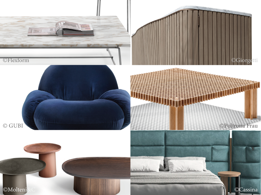 第2回では、B&B ITALIA、Cassina、Flou、Giorgetti、Minotti、Natuzzi Italia、Paola Lentiをご紹介します。- 空間デザイン