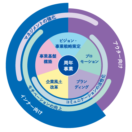 周年事業を経営に活用することで、企業の“らしさ”を引き上げるチカラを生み出すお手伝いをする。
