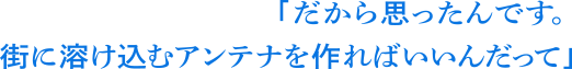 「5G通信の普及には多くのアンテナが必要。だから、どこにでも溶け込むアンテナをつくりました」