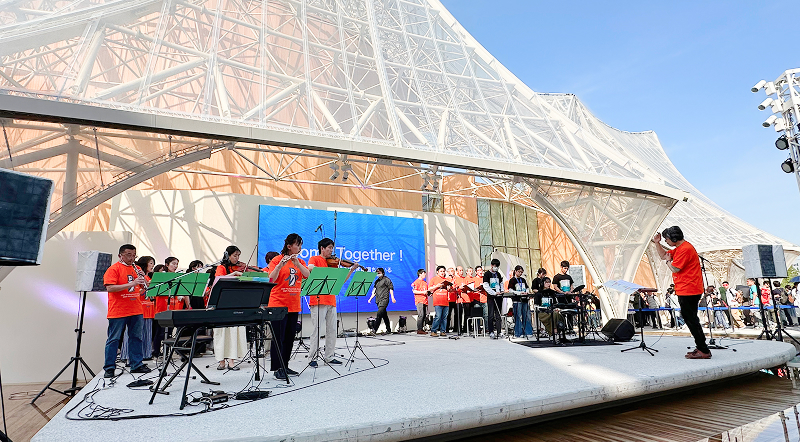 このコンサートでは、事前に収録したDNPフィルと海外各地からのリアルタイム演奏を、会場の生演奏と組み合わせることで、まるで同じ場所で一緒に演奏しているような一体感のあるステージが実現。技術の力で距離を超えた音楽体験が生まれました。