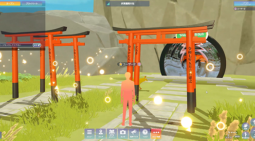 京都の名所・伏見稲荷大社の千本鳥居が、メタバース空間に登場。DNPが作成した高精細な3D仮想空間では、願いごとを残したり、自分の鳥居を建てたりと、リアルさとインタラクティブ性を兼ね備えた体験が可能でした。