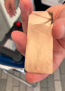 微生物電池システムで使われる菌を格納する実際のシートです(大阪公立大学LAC-SYC研究所作成)です。ぱっと見ではわかりづらいのですが2マイクロメートルほどの菌を格納する微細な孔(ハニカム)があるそう。超微細印刷技術が発電に活用されているのは知っていても、実際に手で持ってみると「おぉ…」と感激しました。とても細かい!