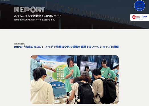 DNPが、大阪・関西万博でどのような業務や企画に挑戦し、これからの未来にどのような想いを抱いて社会に貢献していくのか。そんな姿が垣間見える、読み応えのあるレポートの数々です。現場で感じたリアルな驚きや感動と、DNPが見つめる未来を感じていただけるコンテンツになっています。