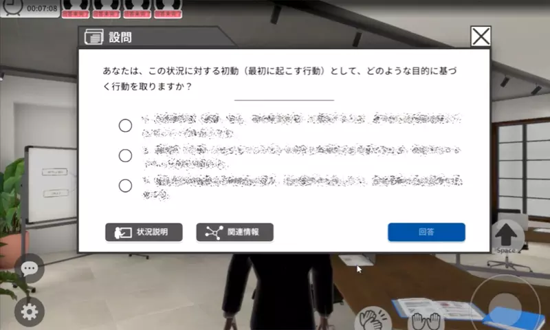- バーチャル空間上でのインシデントシナリオ体験と選択式設問回答