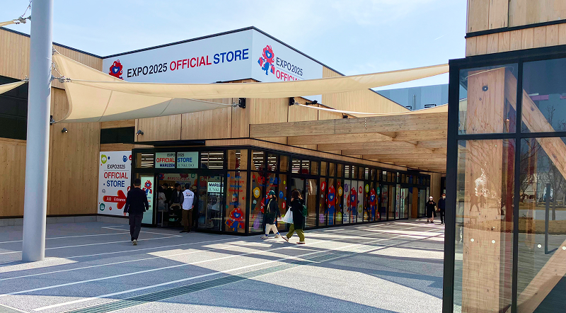 万博会場には万博の公式ショップが4つあります。コラボ商品が充実した「MARUZEN JUNKUDO」、和テイストのアイテムが揃う「大丸松坂屋百貨店」、地元企業とのコラボスイーツで注目を集める「KINTETSU」、鉄道駅を感じさせる店舗デザインが魅力の「JR西日本グループ」です。