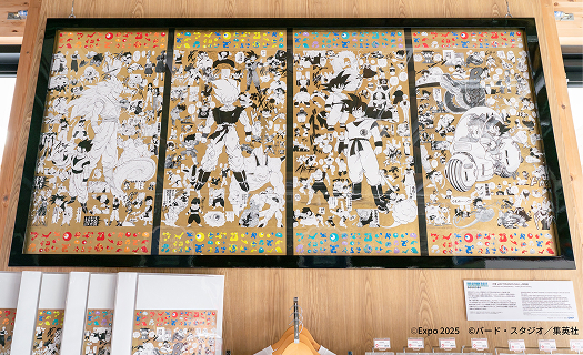 ショップ内に飾られた『DRAGON BALL』と万博のコラボ金屏風