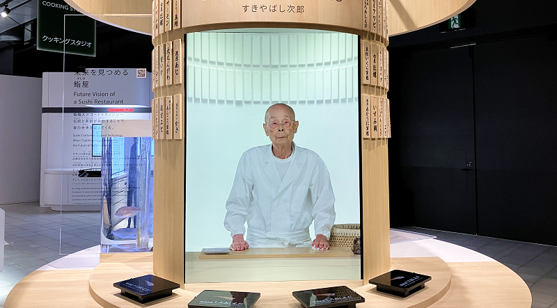 「すきやばし次郎」創業者・小野二郎さんが鮨を握る映像・展示