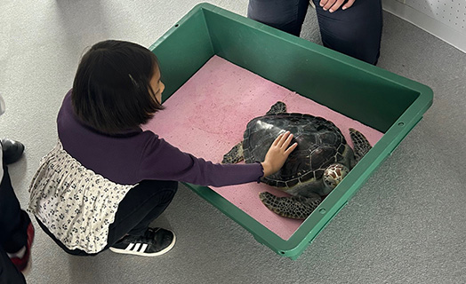 ここでは、協賛企業や団体、大学などの教育機関によるプログラムが実施されています。たとえば、独立行政法人国際協力機構(JICA)は、ジャマイカ、セネガル、エクアドルなどの国々とオンラインでつなぎ、それぞれの国の文化やJICAの支援活動を紹介してもらうほか、SDGsをテーマにした意見交換を現地と行っています。エイチ・ツー・オー リテイリング株式会社は株式会社阪急阪神百貨店など協力企業・団体とともに、ウミガメとふれあえる体験プログラムを通じて、「私たちにできることは何か?」を考えるきっかけを提供しています。さらに、大学主催のワークショップは学生自らが子どもたち向けにSDGsや環境問題について問題提起や講義をすることで、子どもたちと一緒に学ぶ場として活用しています。このようにジュニアSDGsキャンプでは、いのちの大切さやSDGsについて、さまざまな角度から学び、体験することができます。