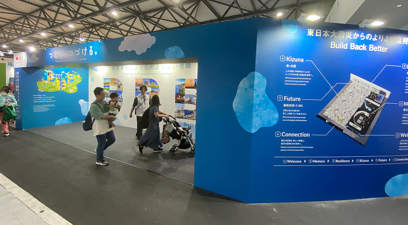 復興庁と経済産業省は、5月19日から24日にかけて「EXPOメッセ『WASSE』」で、「東日本大震災からのよりよい復興(Build Back Better)※1」をテーマとした展示を実施しました。この展示では、DNPが復興庁パートの企画立案からコンテンツ制作、当日の運営までを一貫して担当。今回は、展示の企画・運営に携わった担当者の視点から、その内容をレポートします。