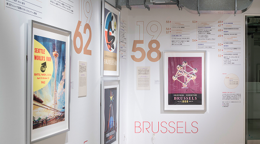 戦後初の一般博となった1958年ブリュッセル万博以降のポスターを時系列で展示