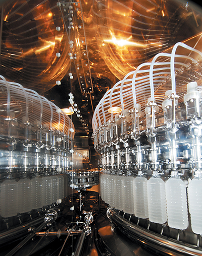当社の中心的事業です。DNPが元来より持つ無菌充填技術をPETボトルに応用し、1994年、国産初の「PETボトル無菌充填システム」を納入。以来、飲料業界ならではの数々の課題を解決することにより、お客様から高い評価を得てきました。現在までに国内外計160ライン以上を納入し、国内におけるPETボトル無菌充填機はトップシェアを誇っております(当社調べ)。