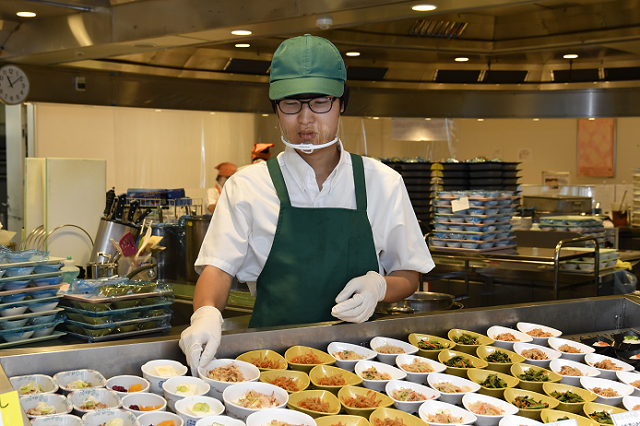 社内食堂の調理補助スタッフとして、盛り付から提供、片付けや、ホール清掃など運営をサポートしています。 |