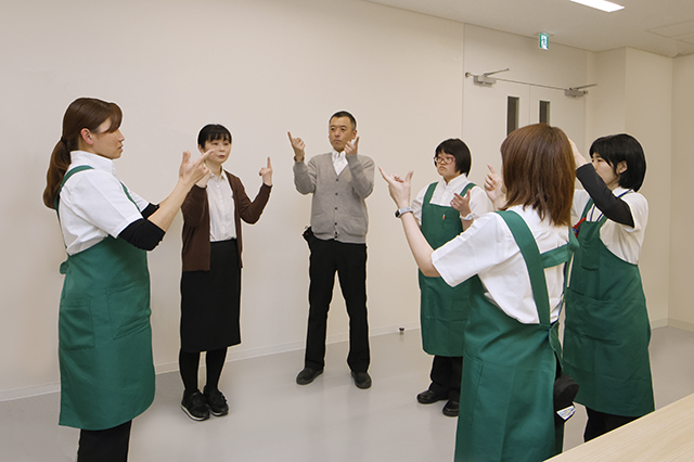 社員の特性に応じて、環境づくりやコミュニケーション促進活動を行っています。手話教室もその一環です。 |
