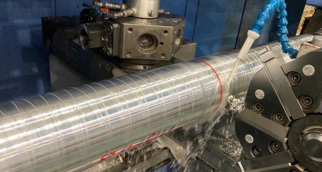 - NC旋盤、NC円筒研削盤、バランシングマシンを所有しガイドロールなどを内製しています。高精度・高剛性に加え、特殊な加工や処理を施すことで、DNP各工場の生産設備で使用している基材の蛇行やシワ発生を抑制し、安定した搬送性能を実現しています。さまざまなサイズのロールや、特殊ロールにも対応可能です。