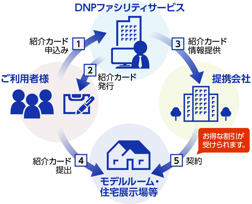 DNPグループ社員・OBの方に住まいづくりをはじめとする豊かな暮らしへのお手伝いをします。不動産会社などと提携して割引サービス・優待サービスを提供しています。