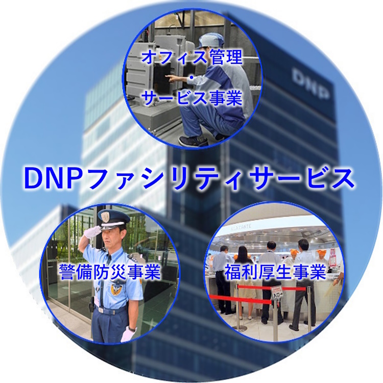 DNPグループのオフィスビル(東京都・市谷、銀座、大阪府・なんば)において、業務が快適かつ円滑に行えるように設備運転管理、環境衛生管理、清掃、設備工事を総合的に行っています。また、オフィスビルの受付業務、イベントの支援などさまざまなオフィスサポートも行っています。