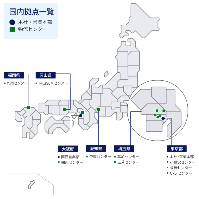 全国9拠点の物流センターを活用し、お客様の商品特性に応じた柔軟な保管サービスを提供しています。