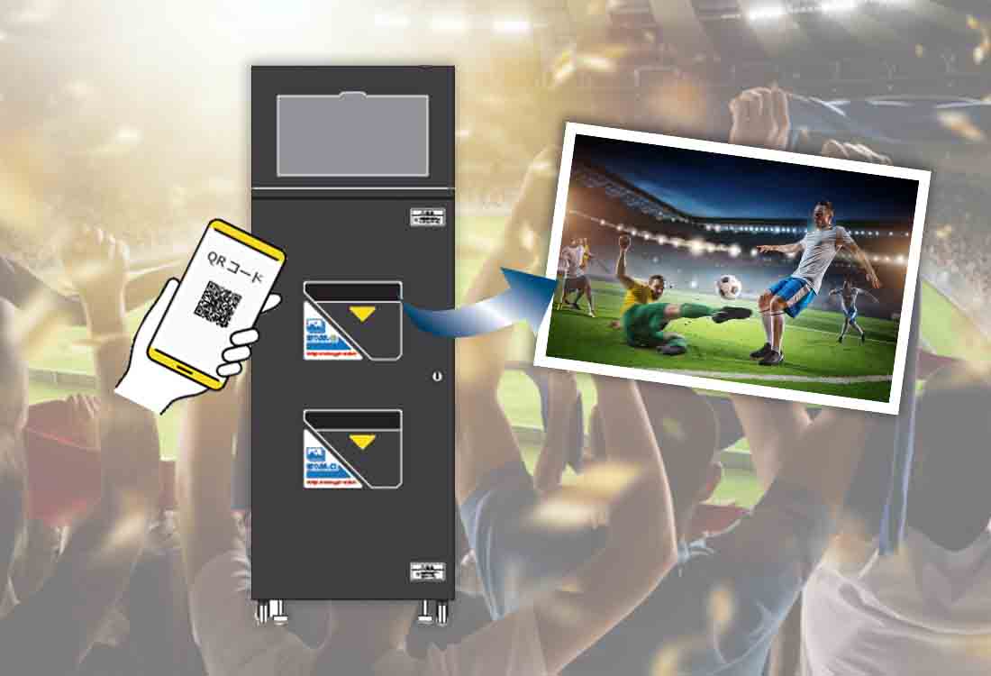 店舗でのブロマイド販売を省力化・効率化できるセルフ型のフォトグッズ販売サービスです。在庫リスクなしで、鮮度を保った展開が可能です。