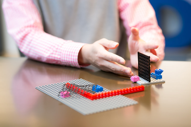 レゴ®のブロックを使って与えられたテーマの作品を作り、個々人が持つ潜在的なイメージを可視化。その後、作品について解説しあうことでお互いの理解を深め、細部のイメージまで共有していくという課題解決の手法。