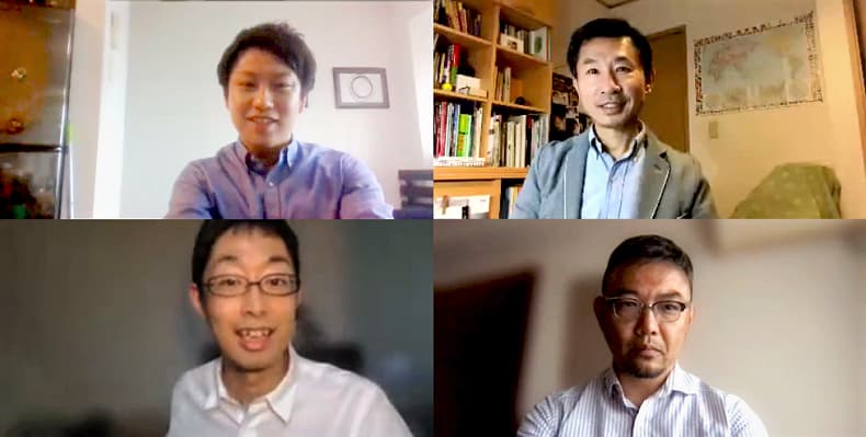 取材はWebでフィリピンと東京をつないで実施した。写真上段左が中嶋一将氏、上段右がDNPのモビリティ事業部の神戸。下段はDiscover DNP編集部。 |