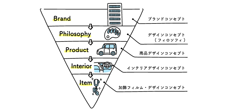 DNPが手掛けるサーフェスデザインは、最上位のブランドコンセプトから規定される個々のコンセプトに基づいて進められる。近年はこの傾向が強まり、上位コンセプトへの理解が、良いプロダクトを生み出すうえで欠かせなくなっている。 |