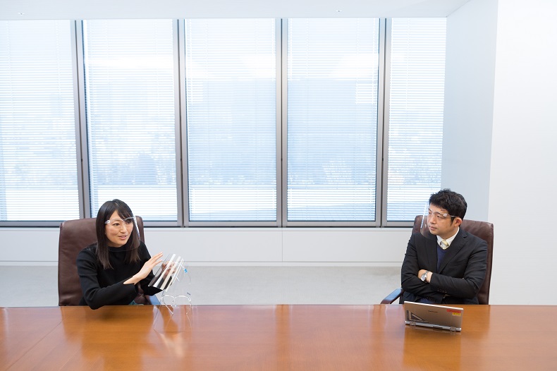 「私たちの超低反射フィルムは、それまでTV等のディスプレイの最表面用途で多くの実績がある一方、それ以外の多用途への展開が課題となっていました。そこに届いた笹本さんからの社内連携の依頼は、コロナ禍という社会課題にも応える内容で、私たちの製品の高い品質をより多くの人に利用していただける機会と考えて、迅速に対応しました。」