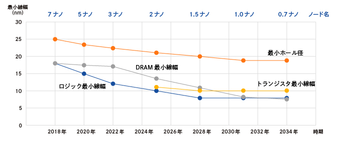 半導体のロードマップを作成する国際的な業界団体「IRDS(International Roadmap for Device and Systems)」によると、半導体に求められる線幅について、2030年以降は10nm以下になると予測されるなど、今後も半導体の微細化は進展していくと見られています。 |