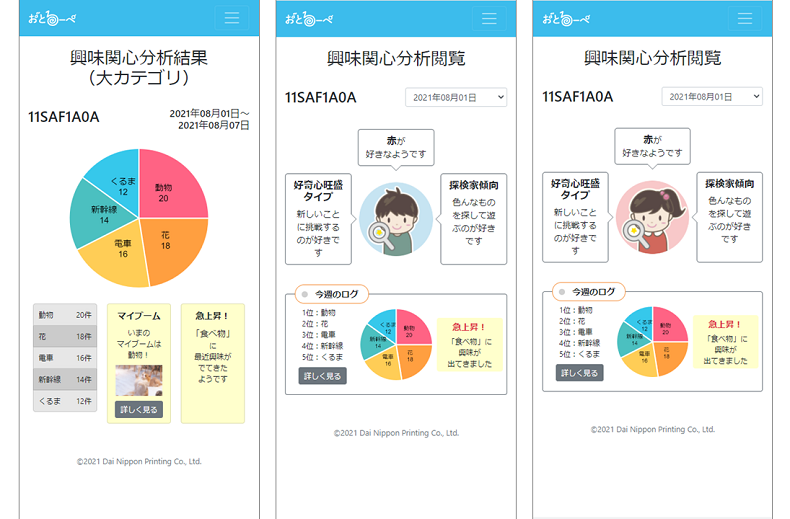 保護者が閲覧できる子どもの興味関心分析画面のイメージ |