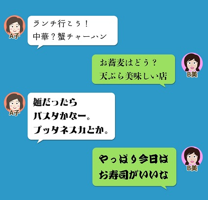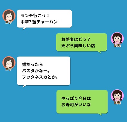 続いては、ランチに行こうとする女性会社員同士で使うとどうなるかを見てみよう。