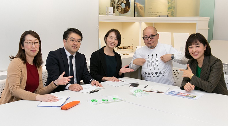 写真:左から大日本印刷 包装事業部 大井典子、加戸卓、尾見敦子、片平隆行、柴田あゆみ。10月開催の展示会・東京PACKより「GREEN PACKAGING」をブランドとして推し進めたメンバー。開発やマーケティング、新規ビジネスに携わる多様な人材が集まり、現在もどのようにブランド価値を高めていくかミーティングを重ねている。 |