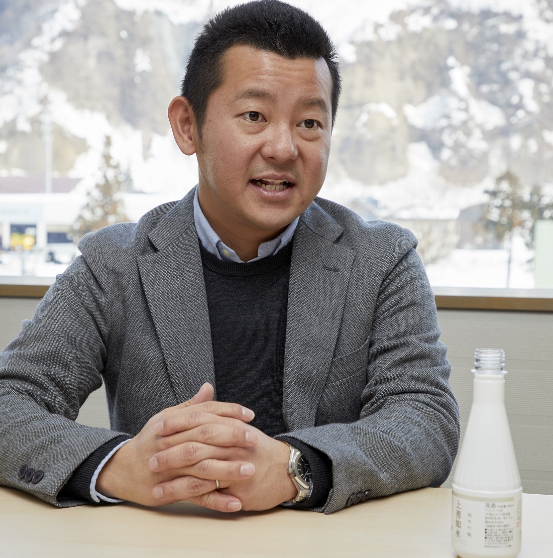 「先代の父は、伝統は作るものではない、破壊と創造の連続の中で伝統はできると常々言っています。私も社員も、そのDNAを受け継いでいます」と語る高橋社長は、就任後、さまざまな変革に取り組んできた。現在、最も注力するのは、若者に日本酒をたしなんでもらうきっかけを作る商品の開発だ。上善如水は安い価格帯のお酒ではないが、すっきりと飲みやすく、初めて日本酒を飲む方にも受け入れやすい商品なだけに、手に取ってもらうには、やはりデザインが重要。デザインで手にしたくなるお酒にしたい」と、モダンでデザイン性のあるラベルを採用し、容器の形状にもこだわった。