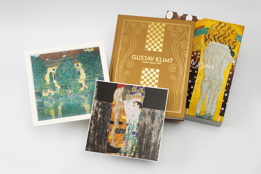 「クリムト展 ウィーンと日本1900」の図録 特装版 プリモアートの複製画2点と特製フレームが付いた800部が限定販売された。 |