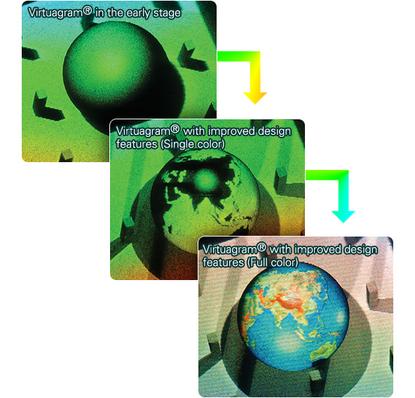 2011年には、バーチャグラム®の技術も改良され、CGのデータから、高品質でフルカラーのエンボス型ホログラムを低価格で量産できるようになっている。