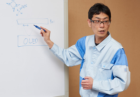 このような研究開発にはチームワークが欠かせない。一人の研究者では、到底すべての領域をカバーできないからだ。黒田は東京理科大学の大学院で液晶を学んだが、DNPでの専門は、入社後に独学で身につけた光学だ。黒田の研究チームには、液晶、配向膜、セルローストリアセテートフィルムの専門家が所属する。「製品開発に成功することは、"みんなが勝つこと"です。みんなでモノを世に送り出したからこそ、喜びも分かち合うことができるのです」