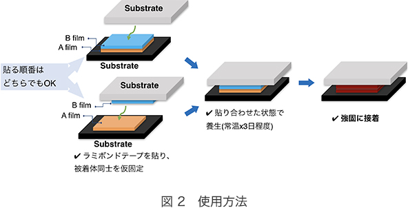それから10年。星が開発した粘接着剤は、将来の電気自動車の普及、航空機や鉄道車両の軽量化などに眼目を置いたものとなっている。その星が今年、自信を持って世に送り出したのが「ラミボンドテープ」だ。自動車等に使用される樹脂、炭素繊維、金属など、異なる素材を接着させる「DNP粘接着フィルム」の新タイプだ。