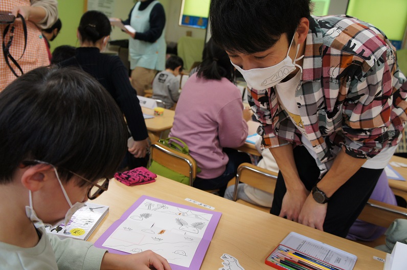 副業では2・3歳から小学生くらいの子どもに向けた恐竜イベントの企画〜開催や、恐竜のイラストを描く仕事をしています。イベントでは恐竜の種類や生態を紹介するほか、自作した化石採掘キットを使ってアンモナイトの化石を掘るワークショップなどを行っています。