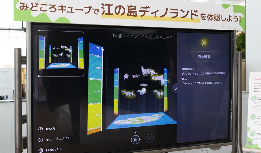 「江の島ディノランド」や恐竜たちを立体的に紹介した「みどころキューブ」