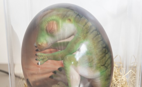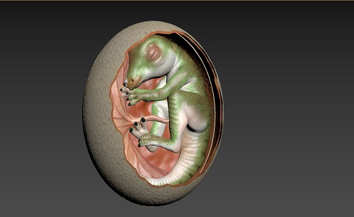 フルカラー3Dプリンターで自動彩色したマイアサウラの卵の模型
