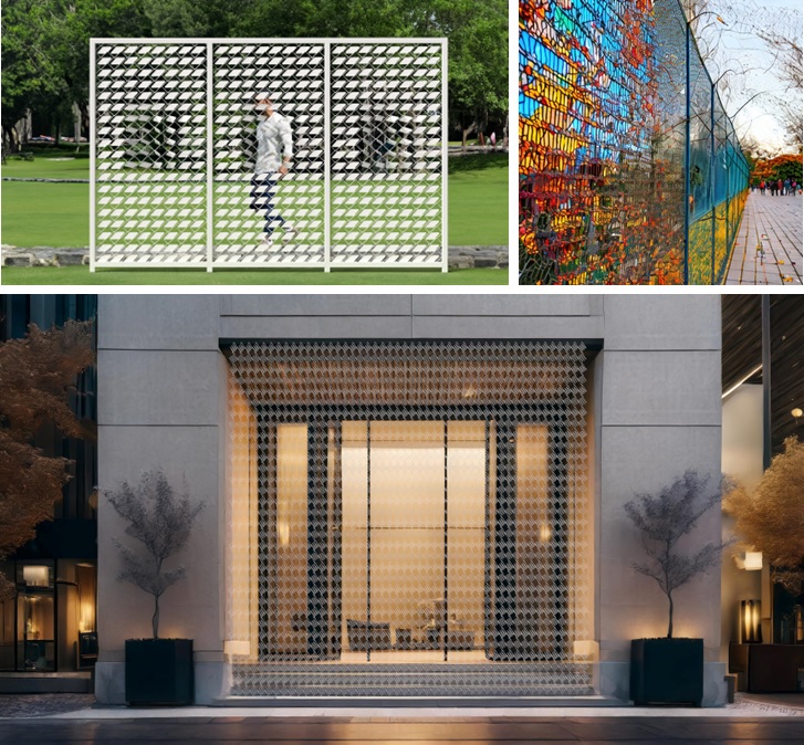 「インターフェンス」の用途はたくさんあると思っています。金網は、網目の大小や層の重なりなどで透過性をコントロールしやすいだけでなく、絵画のキャンバスのように捉えると“印刷“的にアプローチしやすいという特長があります。また、ひし形金網は、溶接せずに編んであるものなので、柔らかさがあり、表現力が高いことも特長です。修繕の際も一部だけ取り外して交換でき、溶かして再利用できるという、サステナブルな素材でもあります。こうした特長を強みとして生かすことで、幅広い表現を実現していきたいと思います。